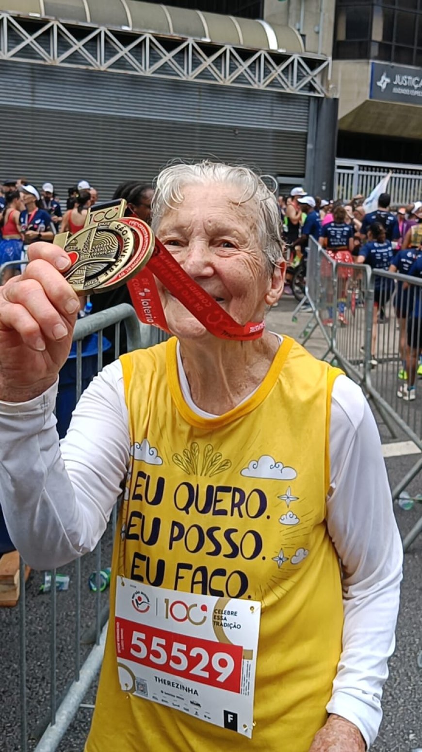 Próximo do aniversário de 90 anos, Dona Therezinha Martucci já faz planos para continuar correndo até os 100 anos. E você duvida que ela vai conseguir? “Só Deus para me parar”, conclui a atleta.