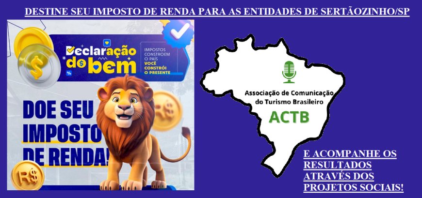 O Destina Sertãozinho, campanha da Associação de Comunicação do Turismo Brasileiro (ACTB), convida você — pessoa física ou jurídica — a exercer sua cidadania de forma consciente, para apoiar diretamente projetos sociais, culturais, esportivos e os fundos municipais da criança, do adolescente e do idoso.